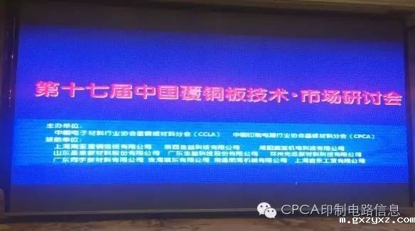由中国印制电路行业协会基板材料分会(CPCA)和中国电子材料行业协会覆铜板材料分会(CCLA)共同举办的“第十七届中国覆铜板技术·市场研讨会”于2016年10月13日在西安咸阳帝都酒店内成功举办。