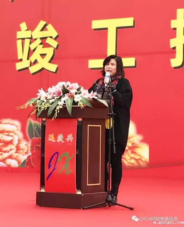 张瑾秘书长在开业庆典上发表致辞,代表CPCA由镭理事长、王龙基名誉秘书长向马卓董事长、迅捷兴全体同仁表示热烈祝贺!信丰迅捷兴的开业投产,是迅捷兴发展历史中的里程碑、又是迅捷兴腾飞的新起点!她特别强调,制造业是国民经济的主体,是立国之本、兴国之器、强国之基,打造具有国际竞争力的制造业是提升我国综合国力、保障国家安全、建设世界强国的必经之路。国家出台了“中国制造2025”的鼓励政策助推制造业做强,希望迅捷兴借此契机、抓住机会、把握时代脉搏、顺应市场发展趋势,推动技术创新,同时注重品牌建设、弘扬品牌文化,为中国电子电路行业发展贡献力量!