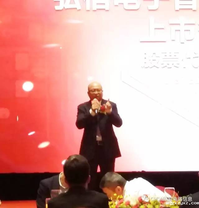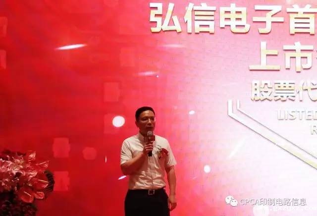 弘信电子成功上市为我们行业树立了标杆,他相信弘信电子有这么好的团队,有这样的拼搏精神以及这么好的产业机会一定会成功,也必须成功。同时也预祝电子产业能够成功,让我们一起前行,一起努力,这是我们这一代人应该赋予的使命。