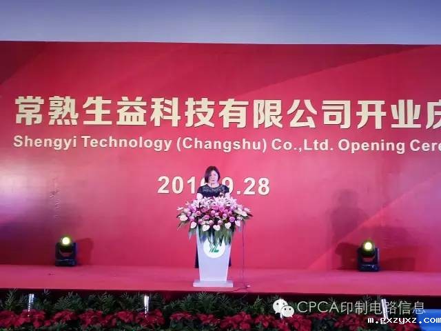 瑞雨兆金秋,2016年9月28日在常熟生益科技有限公司在常熟市高新区香园路19号举行开业典礼,CPCA协会洪芳副秘书长代表中国印制电路行业协会向生益科技表达了开工之喜!