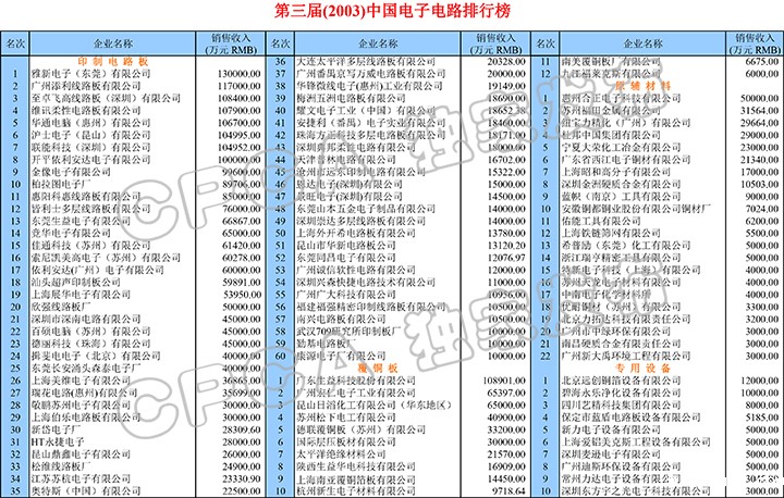 第三届(2003)中国电子电路排行榜