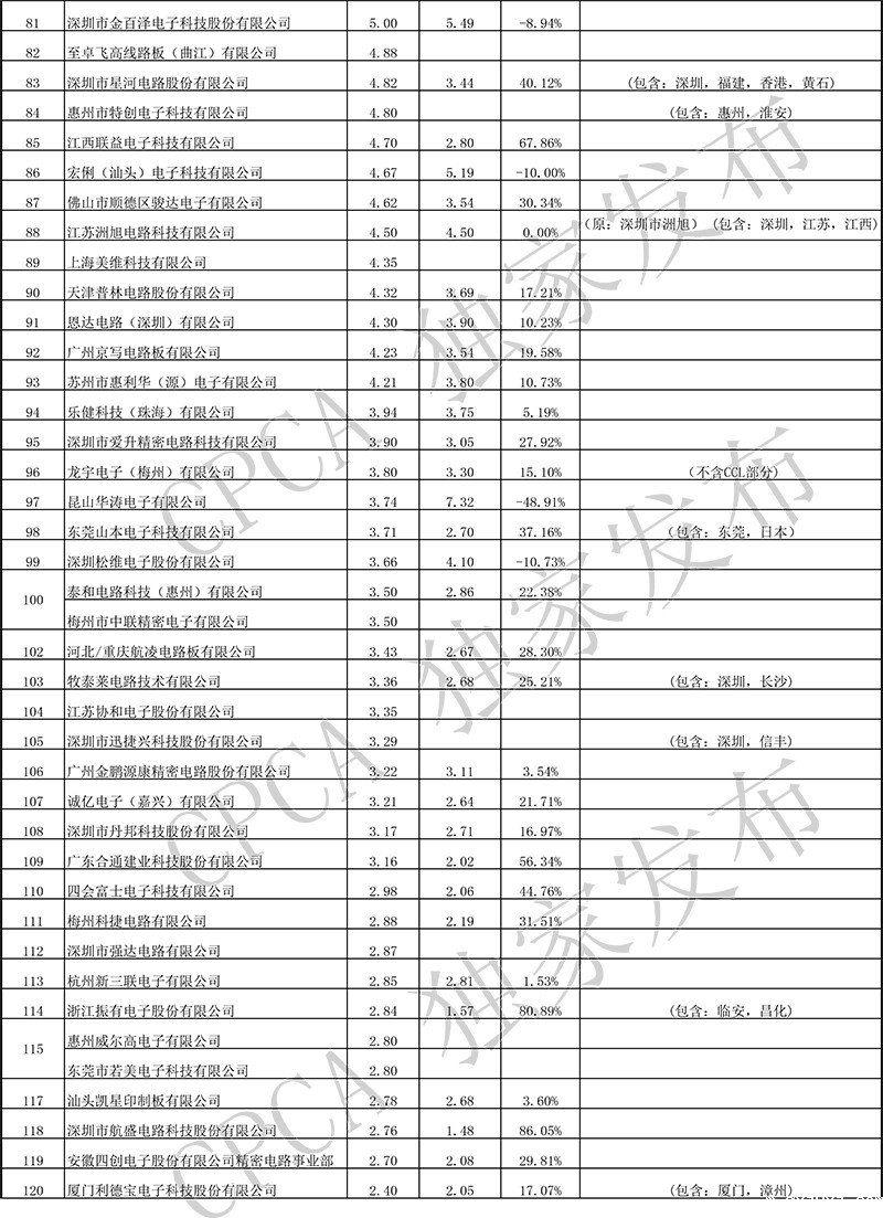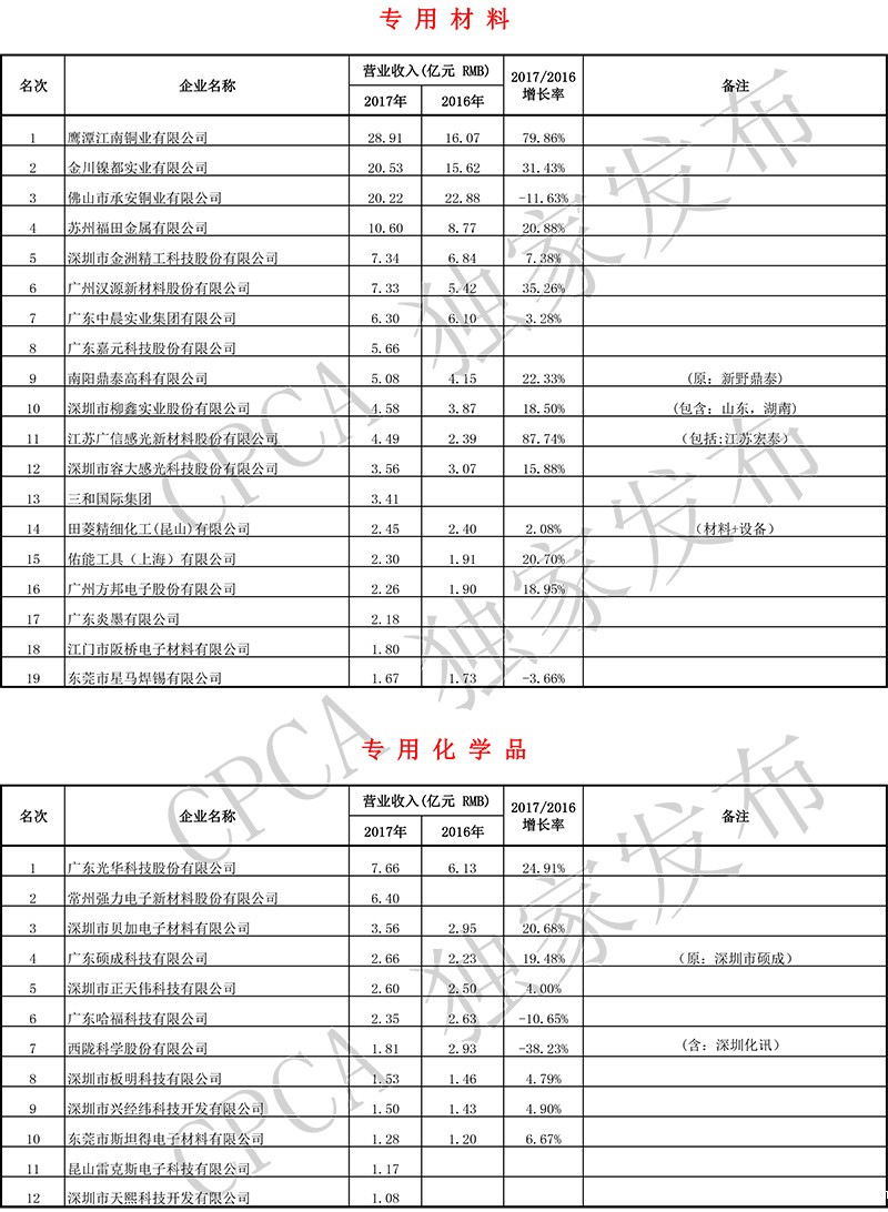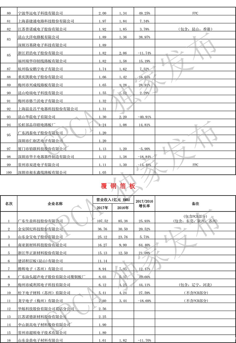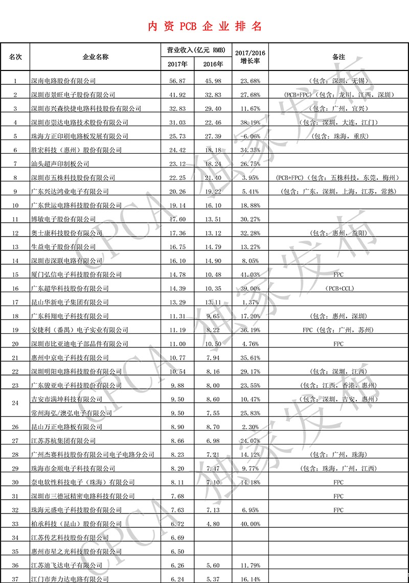 第十七届(2017)中国电子电路行业排行榜