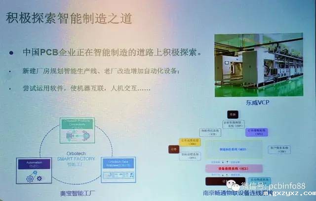 他还指出,中国PCB业智能制造方面还存在着比较大的挑战。因为我们行业还属于密集型、流程跨度长、制程复杂;而我们行业的智能化起步并不早;而且目前行业的智能化还没有具体的统一的标准。