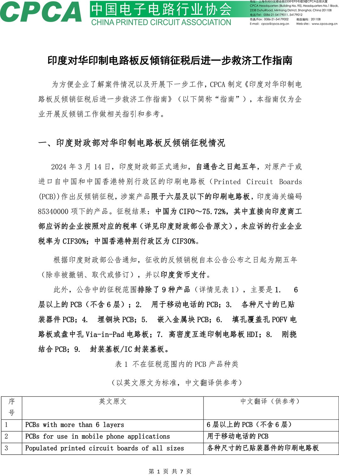 印度对华印制电路板反倾销征税后进一步救济工作指南
